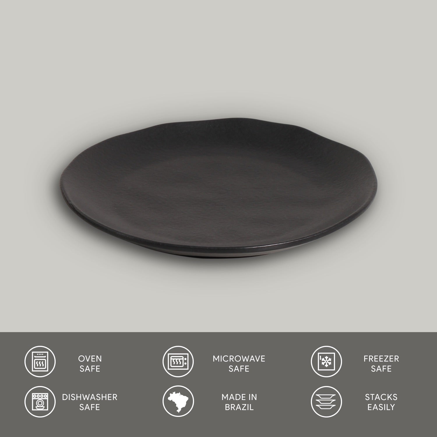 Porto Brasil MATTE BLACK DESSERT PLATE ORGANIC STONEWARE dia. 7.68" SKU: '141473901