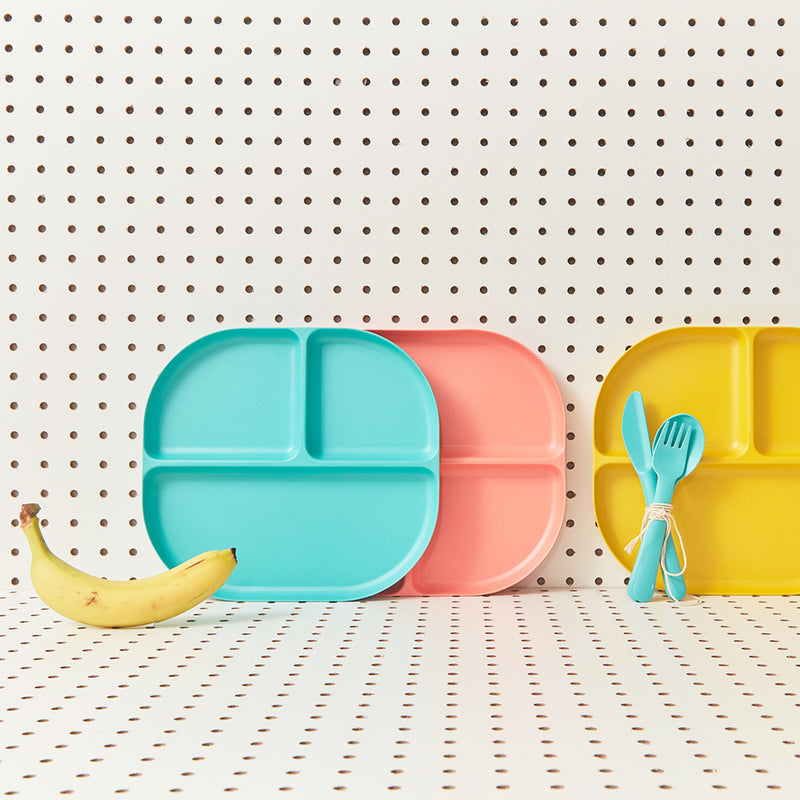 Our bamboo fiber divided tray in coral features 3 roomy sections and high rims. While it’s perfect for a toddler discovering new foods, parents can also enjoy that it's 100% non-toxic and dishwasher-safe.